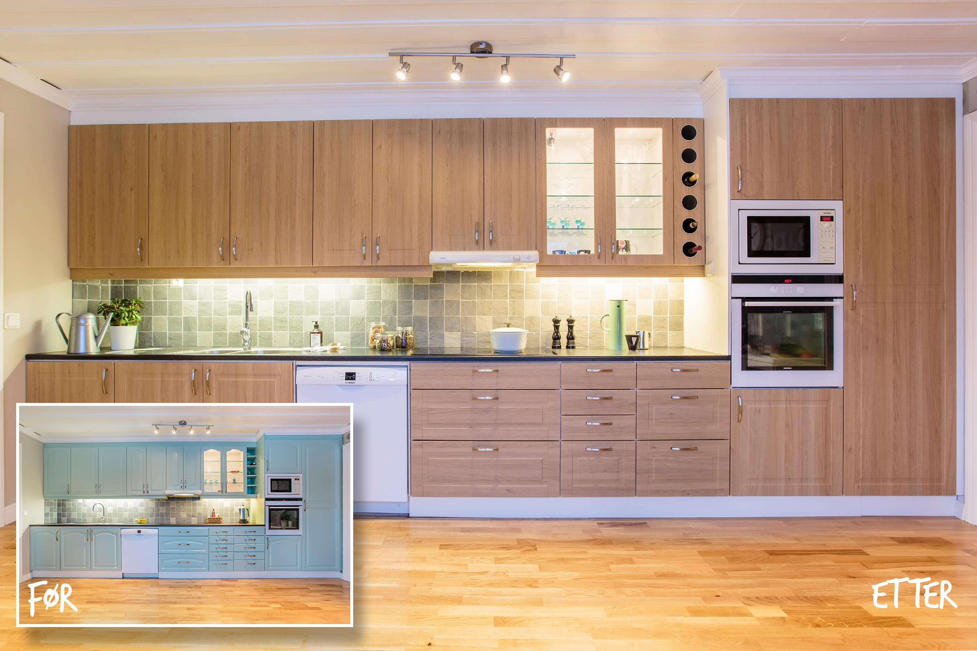 Ut med den gamle og inn med den nye. Lindmark-familien var lei av de gamle turkise kjøkkenskapene fra 80-tallet og fikk en helt ny følelse på kjøkkenet.