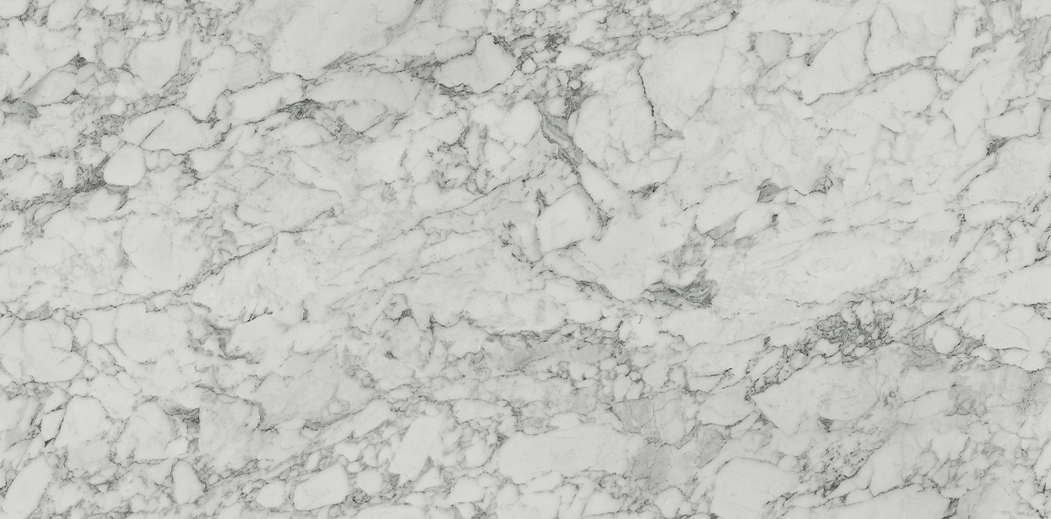 Carrara Marble er en benkeplate i steinimitasjon med et lyst marmormønster med grå årer på hvit bakgrunn.