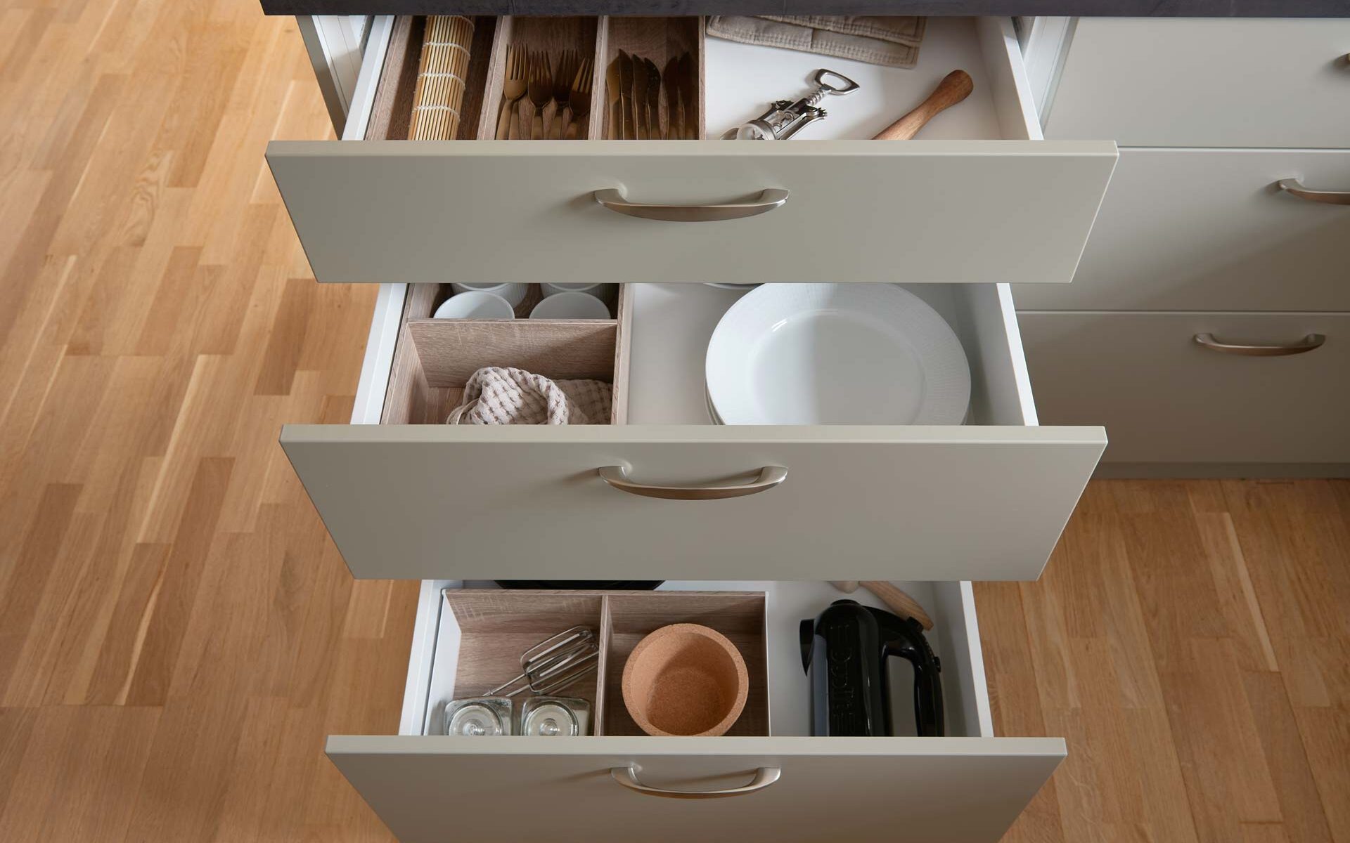 Å finne de riktige oppbevaringsløsningene er essensielt for å skape et kjøkken det er trivelig å oppholde seg i og praktisk å lage mat på. Det holder ikke nødvendigvis å rydde kjøkkenet og ha nok plass i skuffer og skap. Det er like viktig å tenke på hvordan disse kan utnyttes best mulig.